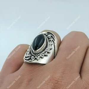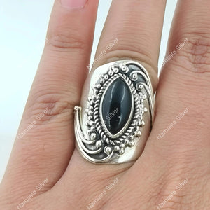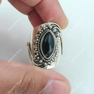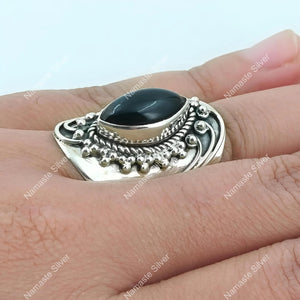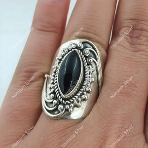 Black Onyx Ring - Black Onyx Silver Ring - Handmade Statement Boho Ring - 925 Sterling Silver Jewelry - Gift for her - Marquise Gemstone