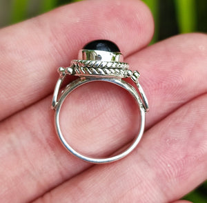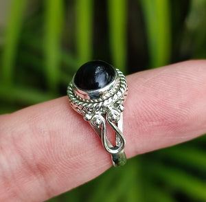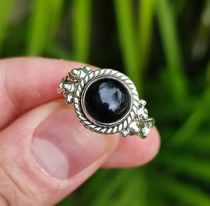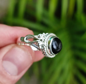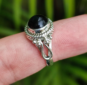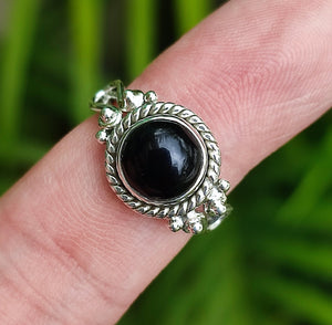 Elevate your style with this exquisite Black Onyx Round Stone Silver Ring. Handcrafted from 925 sterling silver, this ring features a captivating natural black onyx gemstone that exudes elegance and sophistication.