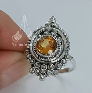 Citrine Ring, Citrine Silver Ring, Citrine Sterling Silver Ring, Citrine Handmade Statement November Birthstone, Yellow Gemstone Jewelry
