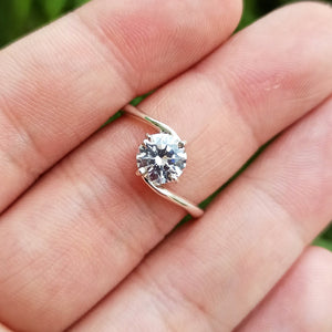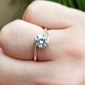 Cubic Zirconia Ring, Six Prongs Solitaire Ring, 925 Sterling Silver Ring, Handmade Gift for Her Birthday Anniversary Bridesmaid Engagement