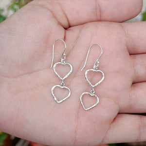 - Dual Heartshape Dangle Earrings with Simple Ear wire.