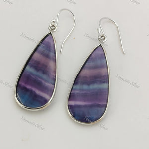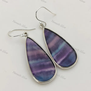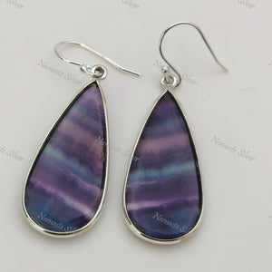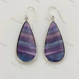 Elevate your style with these exquisite fluorite dangle drop earrings, meticulously handcrafted from 925 sterling silver. Each pair features natural, pear-shaped fluorite gemstones, designed to dangle gracefully and add a touch of minimalist elegance to any attire.