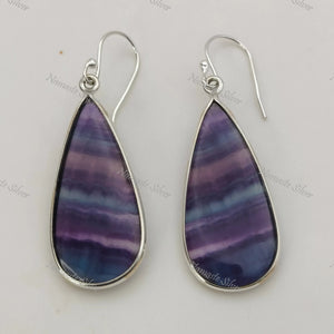 Startseite Fluorite Earrings, 925 Sterling Silver Dangle Drop Bezel Earrings, Natural Fluorite Pear Shape Handmade Boho Jewelry, Unique Gift For Her
