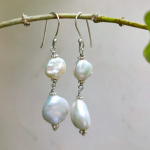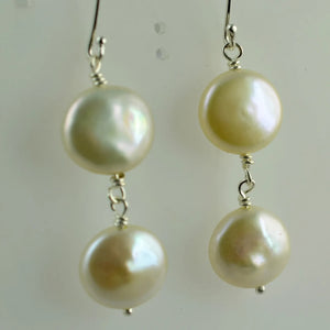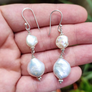 Coin Pearl Earrings, 925 Sterling Silver Handmade Dangle Earrings, Genuine Freshwater Coin Pearl Jewelry, Gift for her Birthday Anniversary