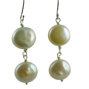 Freshwater coin pearls, with their unique flat shape and mesmerizing sheen, symbolize wisdom, grace, and enduring beauty. These earrings become a whisper of confidence, reminding you to embrace your inner radiance and let your gentle shimmer captivate the world around you. Whether you're drawn to classic styles, a touch of vintage glamour, or simply appreciate the finer things, these pearl drop earrings will complement your look with effortless elegance.