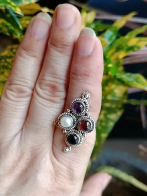 Garnet, Amethyst, Pearl, Black Onyx Sterling Silver Handmade Women Statement Ring, Multi Gemstone Cocktail Silver Ring, Ring For Her