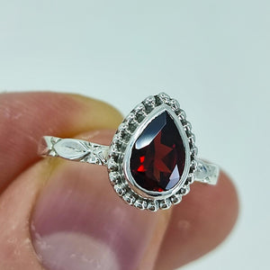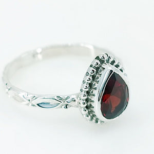 Each ring is meticulously crafted by hand, ensuring the highest quality and attention to detail. The delicate setting showcases the garnet's natural beauty, making it a piece to cherish for a lifetime.