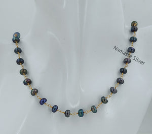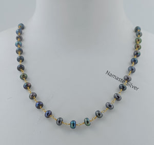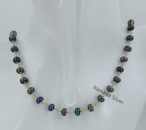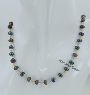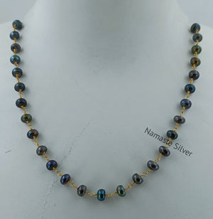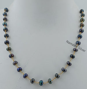Gold Filled Freshwater Peacock Black Pearl Sterling Silver handmade Single Line Beads Strand Necklace