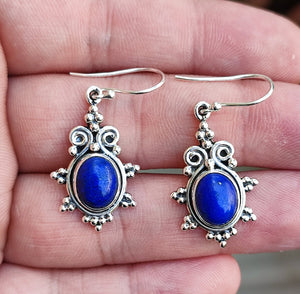 Lapis Lazuli Oval Sterling Silver Dangle Earrings Handmade Natural Gemstone Boho Jewelry Gift for Her Birthday Anniversary Valentine's Day