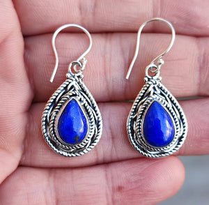 Lapis Lazuli Sterling Silver Handmade Dangle Earrings Pearshape Gemstone Boho Jewelry Gift for Her Birthday Anniversary Valentine Mother Day