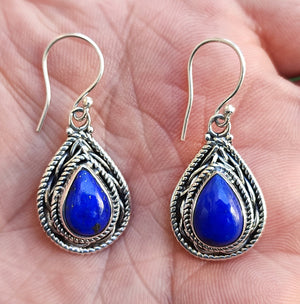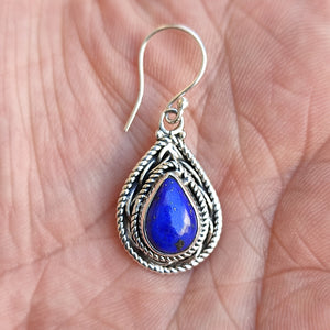 Handcrafted with genuine lapis lazuli pear-shaped gemstones and 925 sterling silver