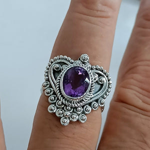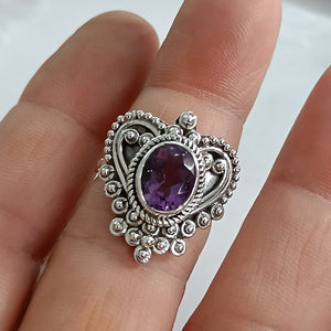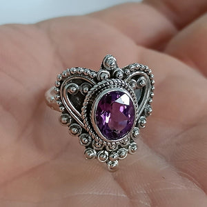 Natural Amethyst Silver Ring Sterling Silver Handmade Statement Heartshape Boho Ring Gift for Her Birthday Anniversary Christmas Valentine