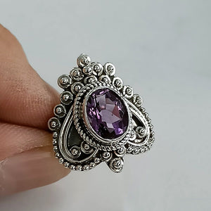 Capture Her Heart with Amethyst: Handmade 925 Sterling Silver Statement Ring