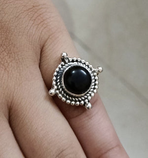 Natural Black Onyx Round 925 Sterling Silver Handmade Statement Women Ring, Black Onyx Silver Ring, Black Gemstone Boho Ring, Gift for Her