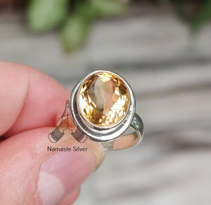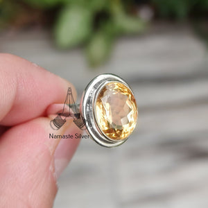 Natural Citrine Oval Sterling Silver Handmade Women Ring November Birthstone Yellow Gemstone Jewelry Gift for Her Birthday Anniversary