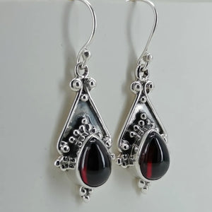 Navya Craft Garnet 925 Sterling Silver Dangle Drop Earrings for Women