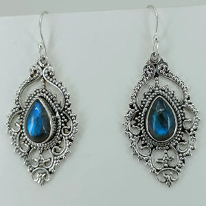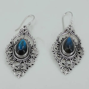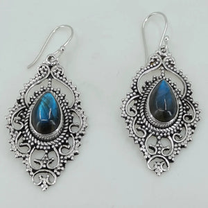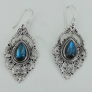 Labradorite Pear Shape 925 Sterling Silver Handmade earrings - Boho January Birthstone Jewelry - Perfect Gift for Her Birthday Anniversary Christmas Valentine Day