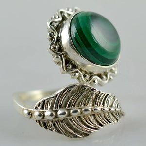 Natural Malachite 925 Solid Sterling Silver Handmade Statement Leaf Design Size adjustable Ring for Women Metal: 925 Sterling Solid Silver free from Lead, Nickel Stone Used: Genuine Malachite Stone Shape: Round Stone Size: 9 mm All Custom Ring Sizes are available between 4 to 13 (US). Kindly measure your exact Ring Size in US before order. Kindly mention your Exact Ring size in Order. Authentic 925 Solid Sterling Silver. Proudly 925 Stamped. High quality finished product.