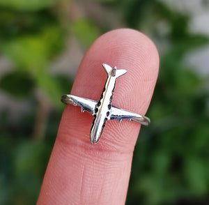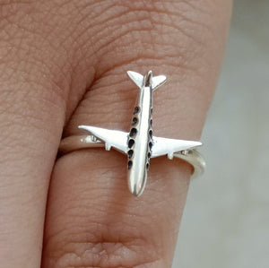 Sterling Silver Airplane Ring - Aviation Minimalist Jewelry - Aeroplane Signet Ring - Unique Travel Gift for Her - Handmade Dainty Ring