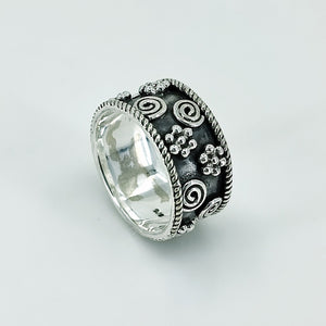 Handmade 925 Sterling Silver Flower Ring Band | Boho Thumb Ring for Women | Designer Artisans Jewelry Gift for her | Chunky Boho Ring