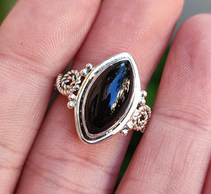 Black Onyx Ring, Black Onyx Silver Ring, Sterling Silver Ring, Black Gemstone Ring, Birthstone Ring, Gift For Her, Boho Handmade Jewelry