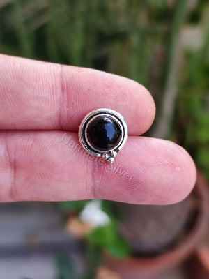 Discover the exquisite beauty of our Handmade Black Onyx Stud Earrings, meticulously crafted with 925 sterling silver. These round stud posts feature natural black onyx gemstones, known for their deep, captivating color and timeless elegance. Each pair is carefully handmade, ensuring unique and high-quality craftsmanship that sets these earrings apart.