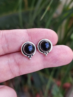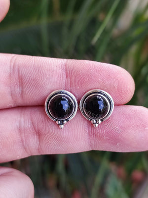 Black Onyx Stud Earrings, 925 Sterling Silver Round Stud Posts, Natural Black Gemstone Handmade Jewelry, July Birthstone Gift for Her