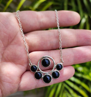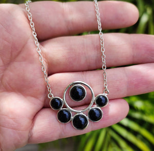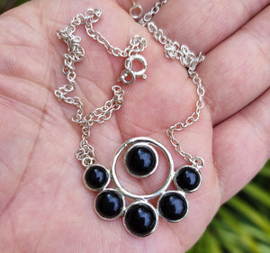 Each necklace is meticulously crafted by hand, ensuring its quality and individuality. The smooth sterling silver chain drapes effortlessly against your skin, while the polished onyx pendant draws the eye with its timeless allure. Whether you're drawn to bohemian vibes, modern minimalism, or a touch of gothic edge, this necklace seamlessly complements your unique style.