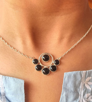 Accueil Black Onyx Sterling Silver Handmade Pendant Chain Boho Necklace for Women Gift for Her Birthday Anniversary Wedding Christmas Valentine Day