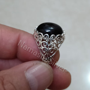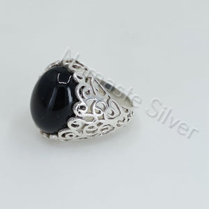 Black Onyx Sterling Silver Ring Black Gemstone Handmade Statement Boho Jewelry Filigree Gift for her Birthday Anniversary Wedding Christmas