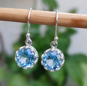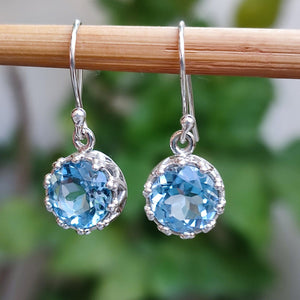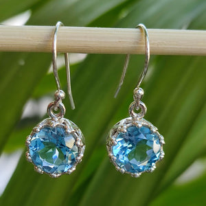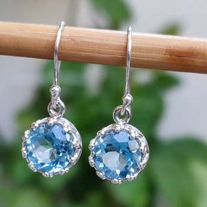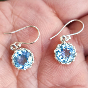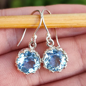 Blue Topaz Earrings, 925 Sterling Silver Handmade Dangle Earrings, Natural Gemstone Round Jewelry, December Birthstone, Gift for her
