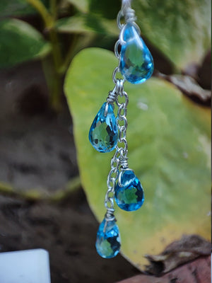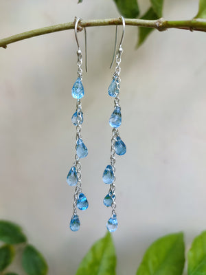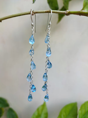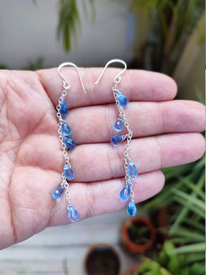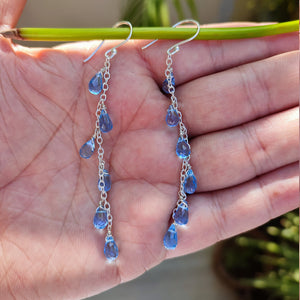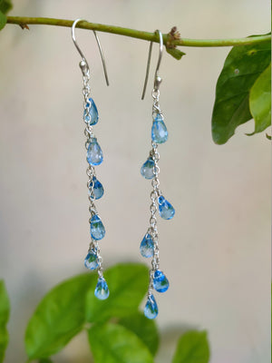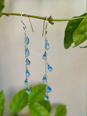 Elegant Blue Topaz Teardrop Beads 925 Sterling Silver Handmade Dangle Drop Earrings