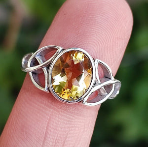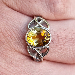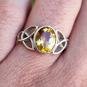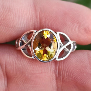 Citrine Oval Celtic Knot Silver Ring 925 Sterling Silver Handmade Celtic Knot Statement Gemstone Boho Ring - Unique Gift for Her