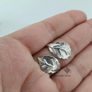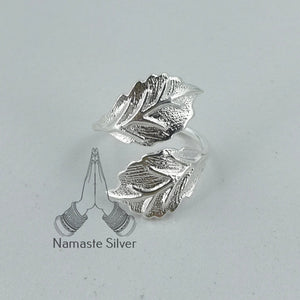 Embrace ethereal elegance with the Dual Leaf Statement Ring. This handcrafted beauty, forged from gleaming 925 sterling silver, features two delicate leaves gracefully twining around your finger. The adjustable band ensures a comfortable fit for girls and women alike, making it a versatile accessory for any occasion.