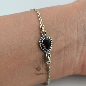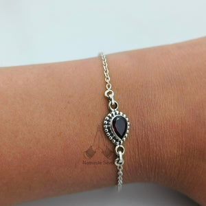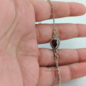 The rich, deep red hues of the natural garnet pear-shaped stones create a stunning contrast against the sterling silver setting, making this bracelet a versatile accessory for any occasion. Whether it's a birthday, anniversary, or wedding celebration, this piece serves as a timeless and elegant gift for her.