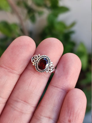 Let the fire within shine through with this mesmerizing garnet ring. Add it to your cart today and embrace the magic of this handcrafted masterpiece.