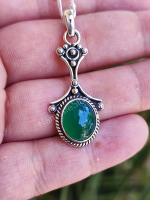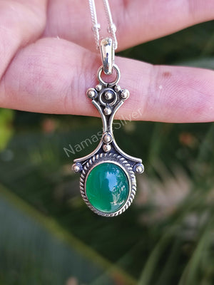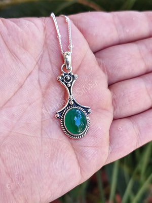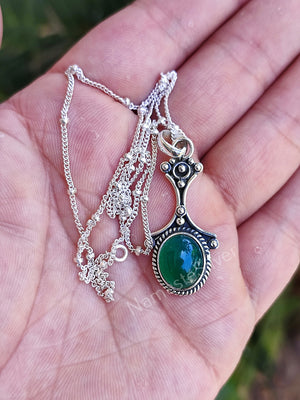 Green Onyx 925 Solid Sterling Silver Necklace for Women, Green Onyx Pendant Chain, Gemstone Necklace, Gift for her, Boho Jewelry