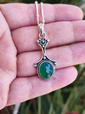 Accueil Green Onyx 925 Solid Sterling Silver Necklace for Women, Green Onyx Pendant Chain, Gemstone Necklace, Gift for her, Boho Jewelry