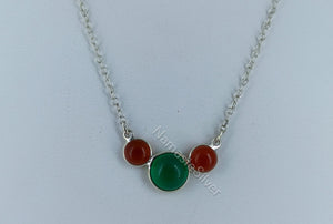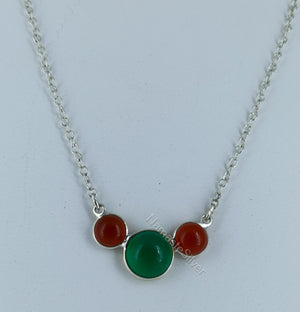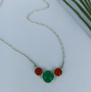 Green Onyx, Carnelian Sterling Silver Handmade Necklace for Women, Girls, Triple Gemstone Necklace, Minimalistic Necklace, Gift for Her