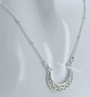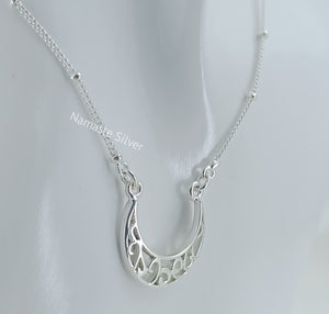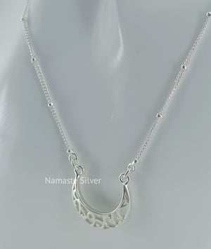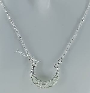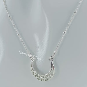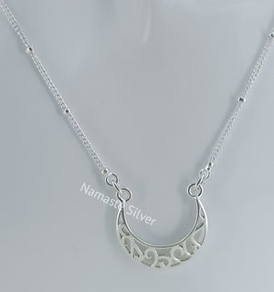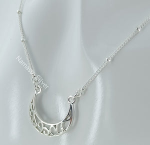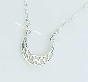 Handmade Sterling Silver Moon Filigree Pendant Necklace, Dainty Silver Moon Necklace, minimalist jewelry, Love Valentine Gift for Her