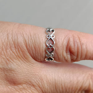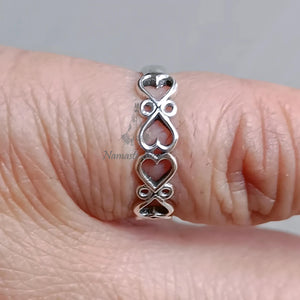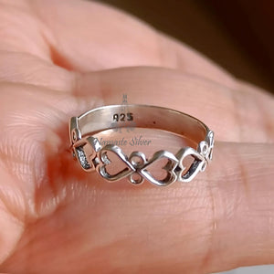 Heart Ring, 925 Sterling Silver Promise Ring, Dainty Heart To Heart Ring Band, Tiny Connected Hearts Handmade Jewelry, Elegant Gift for Her
