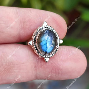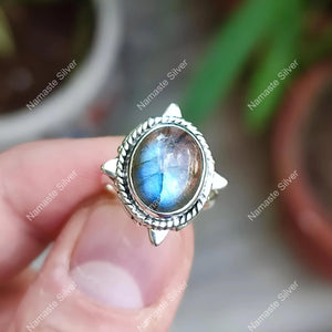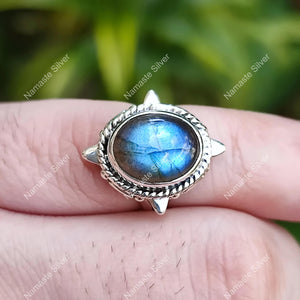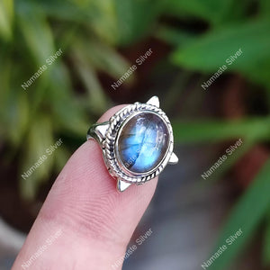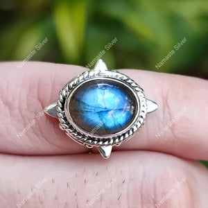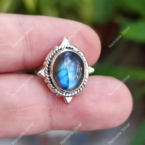 Labradorite Oval Sterling Silver Handmade Ring, Natural Labradorite Gemstone Boho Jewelry, Gift for Her, Birthday Anniversary Mothers Day