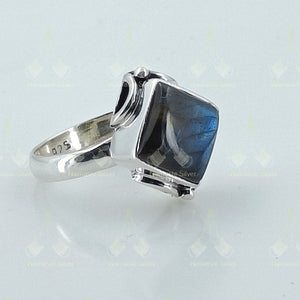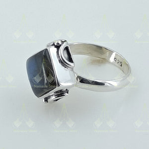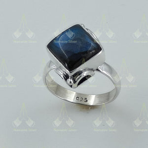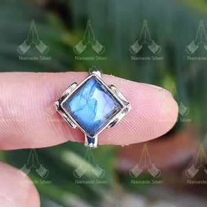 Labradorite Ring Silver - Labradorite Ring Women - Natural Labradorite Square Sterling Silver Handmade Gemstone Jewelry - Gift for her, him