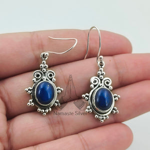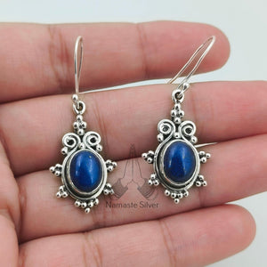 Lapis Lazuli Earrings, 925 Sterling Silver Dangle Earrings, Natural Lapis Oval Gemstone Handmade Jewelry, September Birthstone, Gift for Her