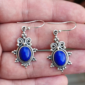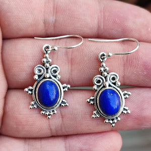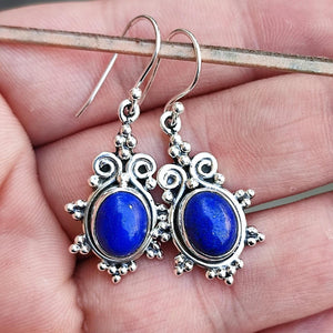 Handcrafted earrings featuring natural oval Lapis Lazuli gemstones.