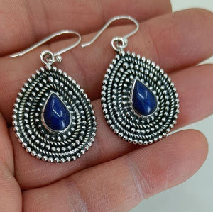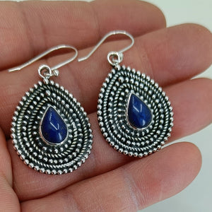 Lapis Lazuli Sterling Silver Handmade Dangle Earrings Boho Gemstone Gift for her Birthday Anniversary Wedding Christmas Valentine's Day