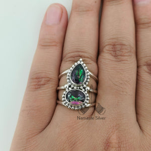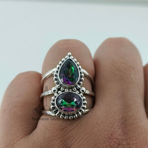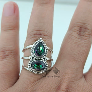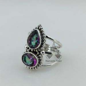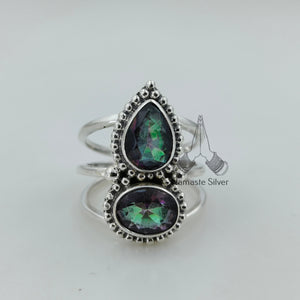 Accueil Mystic Topaz Sterling Silver Handmade Statement Women Ring; Dual Gemstone Gift for her Birthday Anniversary Christmas Valentine's Day