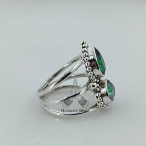 Indulge yourself or surprise a loved one with this Mystic Topaz 925 Sterling Silver Handmade Statement Dual Gemstone Women Ring.