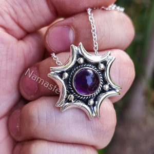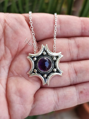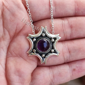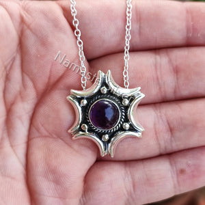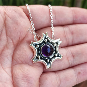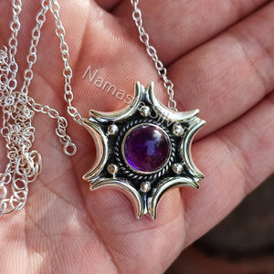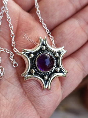 Natural Amethyst Silver Handmade Necklace, 925 Sterling Silver Amethyst Round Pendant, February Birthstone, Purple Gemstone Jewelry