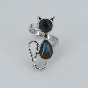 Natural Labradorite 925 Sterling Silver Handmade Gemstone Cat Ring for Women, Gift for her,